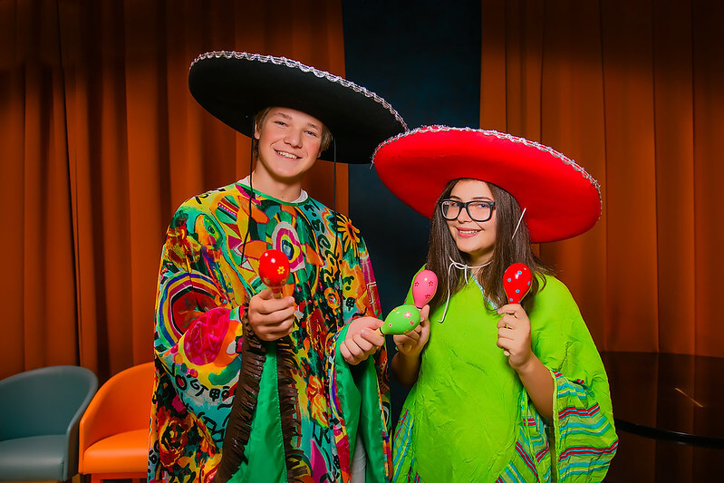 Обычная современная одежда, но если у вас есть яркие и пёстрые рубашки, штаны, платья, юбки - отлично. Дело-то происходит в Мексике